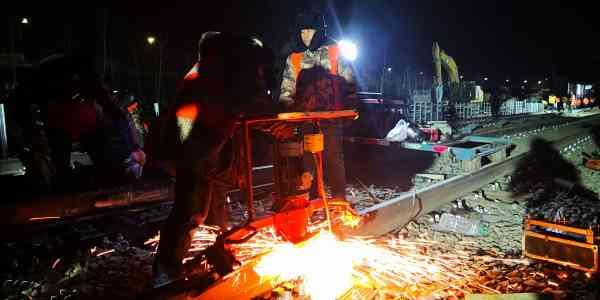 此次撥線工程軌道焊接作業(yè)南北端各1.3公里,12小時(shí)內(nèi)焊接完成22個(gè)焊頭、凍結(jié)接頭制作16個(gè)、低溫應(yīng)力放散800多米。